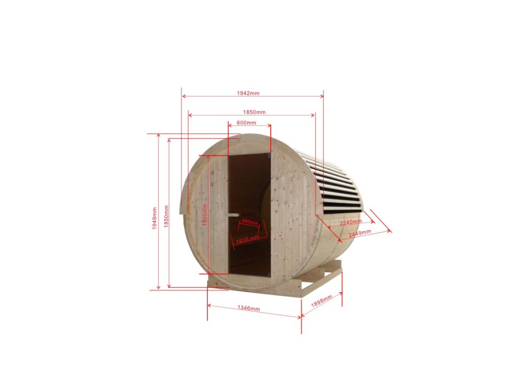 - Kapacita: Mimořádně prostorná kabina navržená pro komfortní saunování 4–6 osob současně.