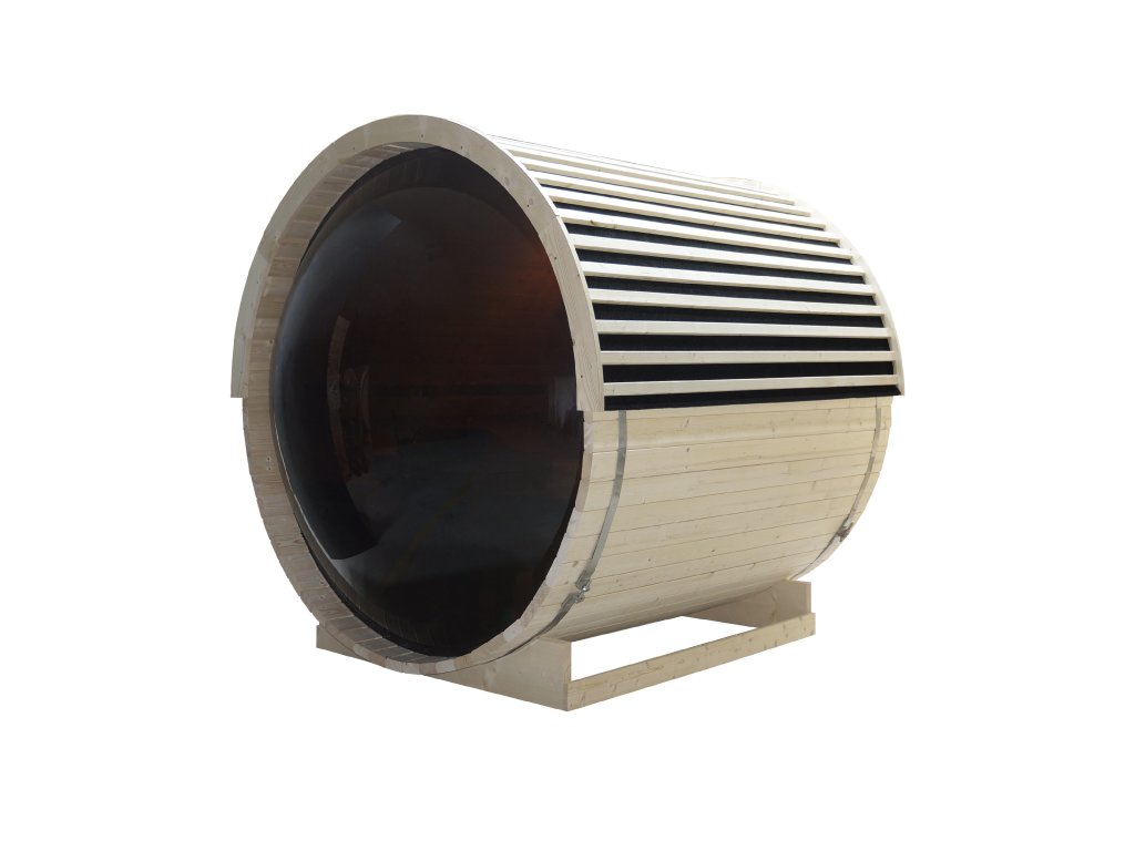 - Prosvětlený interiér s výhledem: Velkorysá přední stěna z 6mm bezpečnostního skla propouští dovnitř přirozené světlo a opticky propojuje saunování s okolní zahradou, což zvyšuje prožitek z odpočinku.