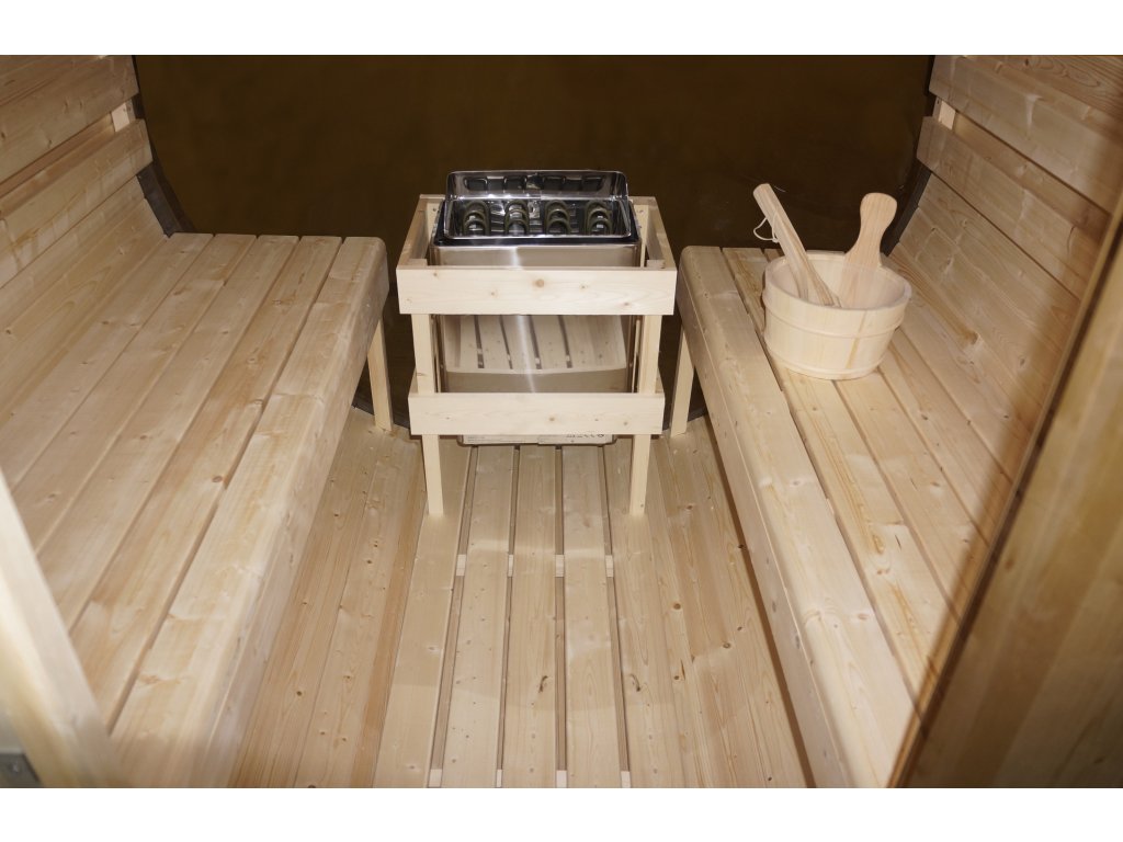 - Výkonné vytápění: Srdcem sauny jsou silná 8kW kamna, která jsou dodávána včetně originálních saunových kamenů pro dosažení intenzivního tepla a páry.