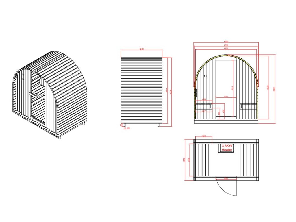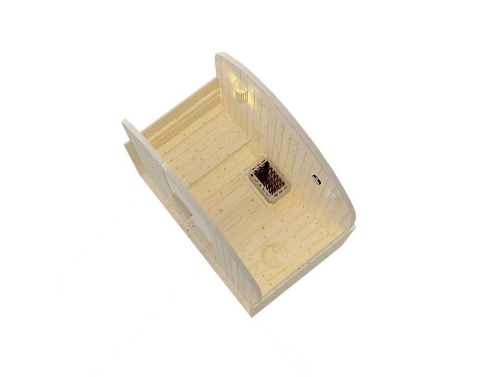 - Konstrukční materiál: Masivní smrkové dřevo o tloušťce stěny 3,8 cm. Tato tloušťka zajišťuje vynikající strukturální stabilitu a efektivní tepelnou izolaci kabiny.