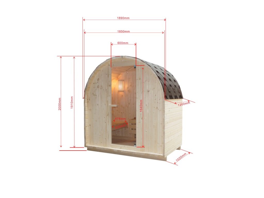 - Materiál kabiny: Masivní smrkové dřevo o tloušťce stěny 3,8 cm. Tato tloušťka garantuje vynikající strukturální stabilitu, dlouhou životnost a špičkové izolační vlastnosti.